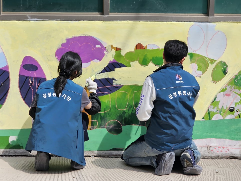 중랑구 한길지역아동센터에 노후된 벽화를 제거하고 새롭게 단장하는 활동입니다.
