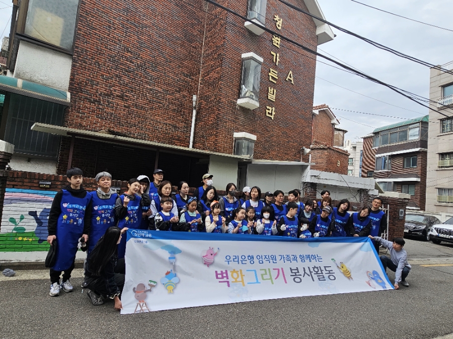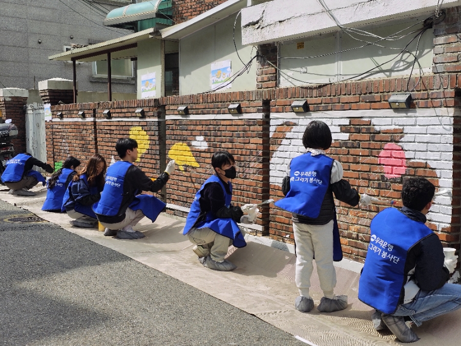 4월12일 우리은행 임직원 가족이 함께한 벽화봉사활동이 동작구 상도2동 일대 꽃담길에서 진행되었습니다.